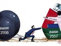 “ดับฝัน” กันไปทีเดียว… กับสถานการณ์การส่งออกของไทยในปี 56 หลังจากที่สำนักงานคณะกรรมการพัฒนาการเศรษฐกิจและสังคมแห่งชาติ หรือ สศช. ได้ ออกมาฟันธงชัดเจนว่า “ตายสนิท” เป็นได้แค่ “เซตซีโร่” คือไม่มีอัตราเติบโต เพราะได้รับผลกระทบจากเศรษฐกิจโลกที่ฟื้นตัวได้อย่างช้า ๆ เห็นได้จากการที่กองทุนการเงินระหว่างประเทศหรือไอเอ็มเอฟ ได้ปรับลดการคาดการณ์ภาวะเศรษฐกิจโลกจาก 3.3% เหลือเพียง 2.9% ซึ่งถือว่าเป็นอัตราการขยายตัวที่ต่ำที่สุดในรอบ 4 ปี โดยเฉพาะอย่างยิ่งเศรษฐกิจในกลุ่มประเทศยุโรปที่เชื่อกันว่าตลอดทั้งปี 56 จะถดถอยหรือติดลบถึง 0.7% ทีเดียว ขณะที่สหรัฐอเมริกานั้นอาจเติบโตเพิ่มขึ้นบ้างโดยมาอยู่ที่ 1.6% ส่วนญี่ปุ่นอาจเติบโตได้ 1.8% และจีนเติบโตได้ 7.6% ไม่เพียงแค่เศรษฐกิจ โลกชะลอตัวเท่านั้น ที่พ่นพิษใส่การส่งออกของไทย แต่ยังมีปัจจัยเรื่องของค่าเงินบาทที่แข็งค่าขึ้นมากจนแตะระดับ 28.60 บาทต่อดอลลาร์สหรัฐ เมื่อวันที่ 29 เม.ย. 56 ซึ่งถือว่าเป็นการแข็งค่ามากที่สุดในรอบ 16 ปี ส่งผลให้ผู้ผลิตสินค้าไทยจำนวนมากไม่กล้าส่งออก เพราะกลัวขาดทุน ขณะเดียวกันยังมีเรื่องของสินค้าเกษตรที่ตกต่ำ ทั้งยางพารา มันสำปะหลัง หรือแม้กระทั่งข้าว พระเอกสำคัญของไทย ในเมื่อการส่งออกในปี 56 ไม่เติบโต ขณะที่ภาครัฐเองคงไม่สามารถให้ความช่วยเหลืออะไรได้ เพราะก่อนหน้านี้ได้ขนสารพัดมาตรการกว่าครึ่งร้อยมาแล้วก็ตาม แต่ก็…ไร้ผล ไม่สามารถผลักดันให้การส่งออกเติบโตได้ตามที่วางเป้าหมายไว้ที่ 7% เป้าส่งออกปี 57 สวยหรู ดังนั้นเมื่อทุกอย่างเป็นเซตซีโร่ไปแล้ว คงเป็นเรื่องไร้ประโยชน์หากจะมานั่งคลำทางผลักดันให้ส่งออกเติบโต ดังนั้นหลายฝ่ายจึงฝากความหวังไว้กับปี 57 เพราะอย่างน้อยเมื่อในปี 56 การส่งออกไม่ขยายตัว นั่น…หมายความว่าฐานการคำนวณจะต่ำย่อมส่งผลให้อัตราเติบโตในปี 57 ย่อมสูงขึ้นโดยปริยาย นอกจากนี้ทั่วโลกยังมั่นใจว่าแนวโน้มเศรษฐกิจโลกในปี 57 จะดีขึ้นกว่าปีนี้แน่นอน คืออาจเติบโตได้ที่ 3.5% ซึ่งถือเป็นกลไกหลักที่ช่วยสนับสนุนให้การส่งออกของไทยลืมตาอ้าปากได้ โดย สศช.ได้ประเมินว่าอาจเติบโตได้ถึง 7% ทีเดียว ขณะที่กระทรวงพาณิชย์ ในฐานะหน่วยงานหลักที่ต้องกำกับดูแลให้การส่งออกเดินหน้าให้ได้ ก็ประมาณการไว้แบบเรียบ ๆ ไม่หวือหวา โดยเติบโตได้ที่ 5% เอกชนพร้อมจัดเต็ม ส่วนมุมมองของภาคเอกชนก็ไม่แตกต่าง และเชื่อว่ามีโอกาสสูงที่การส่งออกจะเติบโตได้ที่ 7% เนื่องจากตลาดส่งออกหลัก 3 ตลาดของไทย ได้แก่ สหรัฐอเมริกา ยุโรป และญี่ปุ่น เศรษฐกิจมีแนวโน้มฟื้นตัวดีขึ้นจา